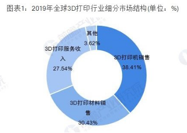 隨著多年的發(fā)展,3D打印產(chǎn)業(yè)目前已形成基礎(chǔ)技術(shù)較成熟、新技術(shù)不斷創(chuàng)新的技術(shù)體系,材料部分的創(chuàng)新也層出不窮,逐漸成為航空航天、汽車、消費(fèi)電子、醫(yī)療等領(lǐng)域的熱門技術(shù)。3D打印材料在3D打印產(chǎn)業(yè)中必不可少,占據(jù)著3成的份額。